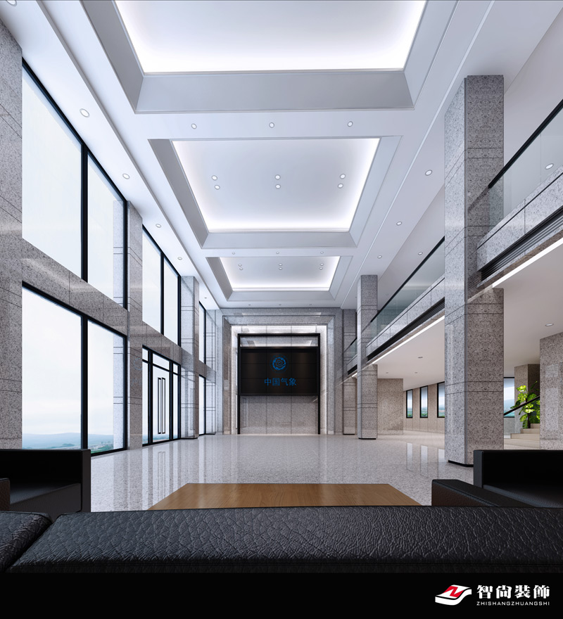 2014年我司中标长沙市气象局莲花气象观测台科技楼二次装修设计项目,下图为科技楼大厅设计图。
