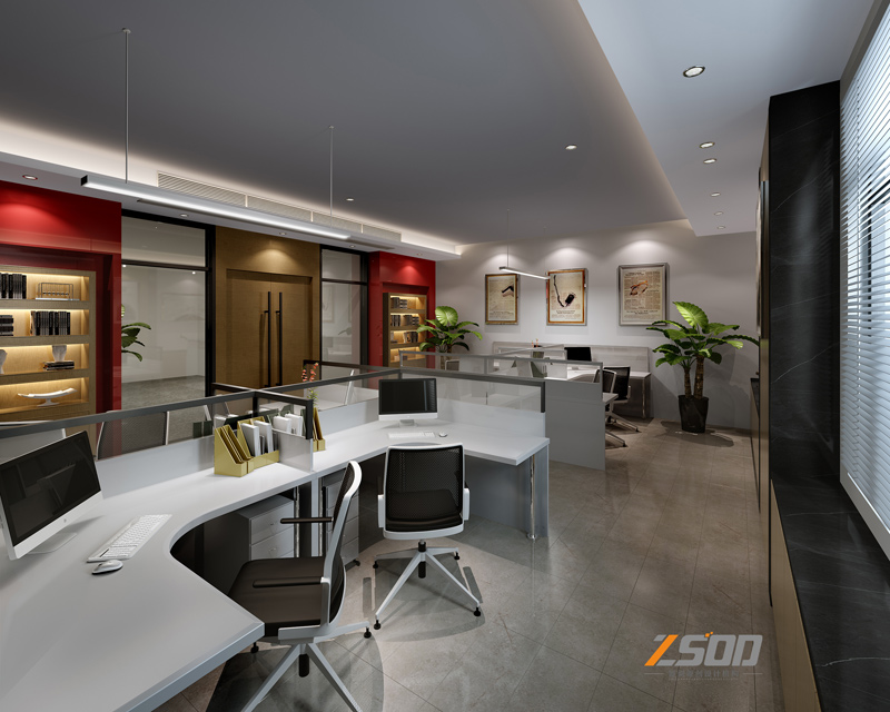 办公区采用灰色系天花,凸显出整个空间的沉稳,