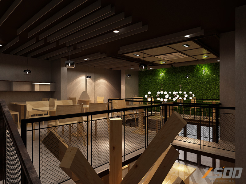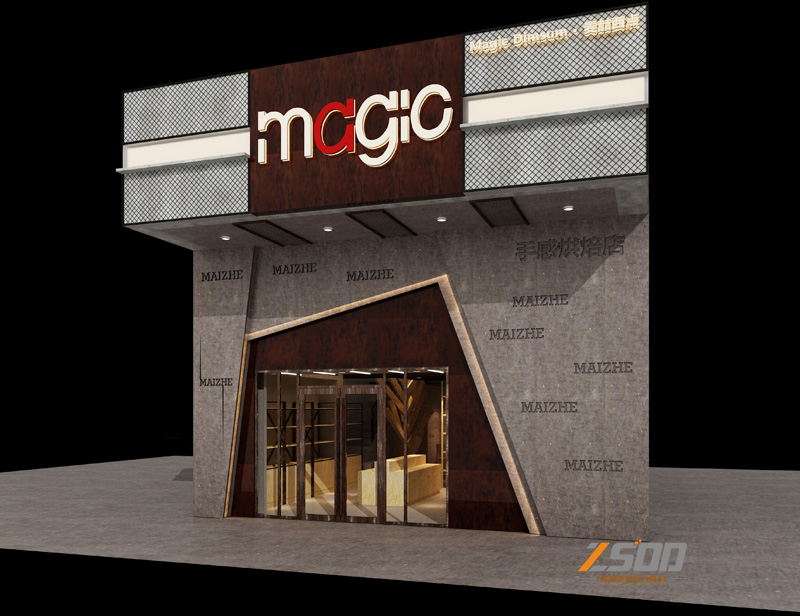 设计说明:这是一家名叫“magic”的手感烘焙店,遍布全国各大主要城市,此项目是位于长沙的一家分店。设计师根据甲方的要求,用树木为主题塑造了一个崭新的空间,为就餐者营造一种回归自然、健康舒适的就餐环境。外观上,整体风格洽同店名,神秘而又深远,紧致小巧,好似碟中的一块巧克力蛋糕,等你走进去才发现竟是如此的宽广。设计师根据经营的特点,巧妙安排上下两层的空间布局,顾客可以在一楼选好自己喜欢的点心之后,上二楼就餐。餐厅内部以现代简约风格为基础,加入了很多自然元素,材料上,选用的是最接近自然的生态原料,打造一种贴近自然的就餐环境。在色彩方面,设计师也选用了自然界固有的颜色,不仅让空间显得更加宽敞舒适,且极为洁净。二楼的背景墙选用绿叶进行铺设,一上楼便映入人的眼帘,在暖色灯光的渲染下,一股温暖、亲切和自然轻松的氛围油然而生。