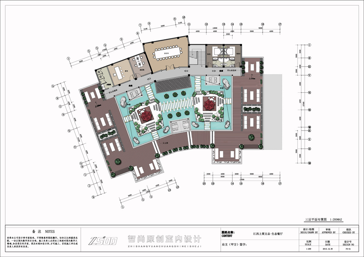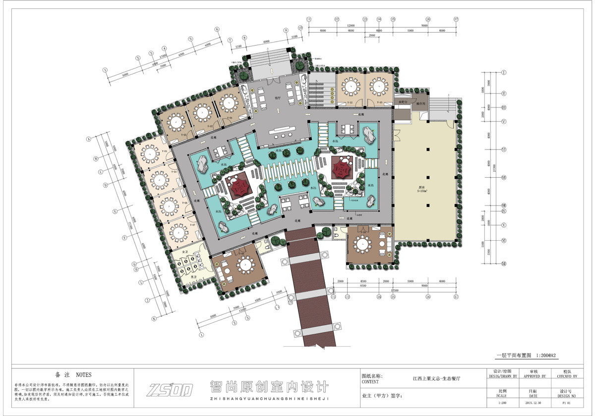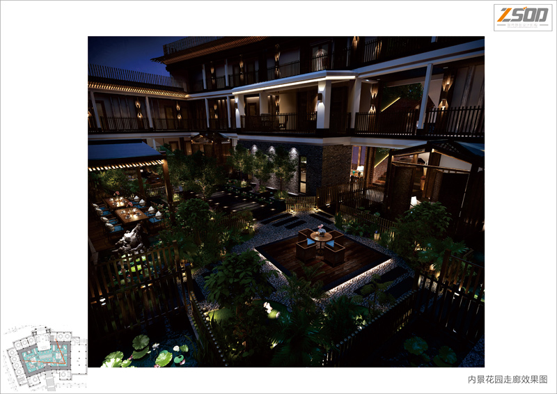 力和互动性。其次我们把中庭地概念引入了这个项目,辅以流动的清澈河水,葱翠的绿植,幽深的石子小径,半露天及露天的休闲就餐区,提升了项